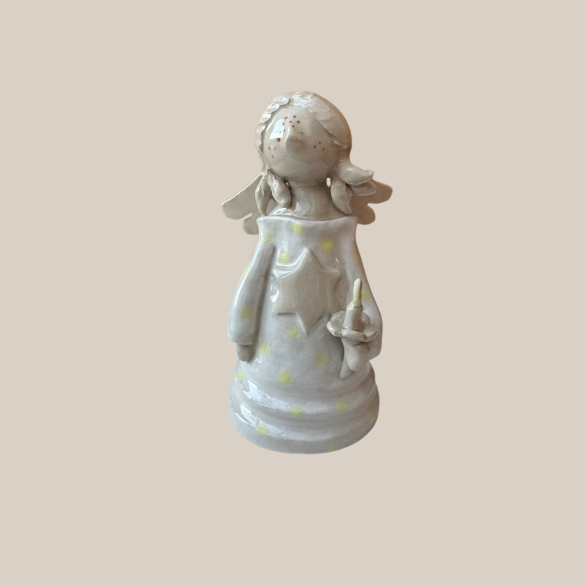 Keramikengel drejet i lys stentøjs ler.