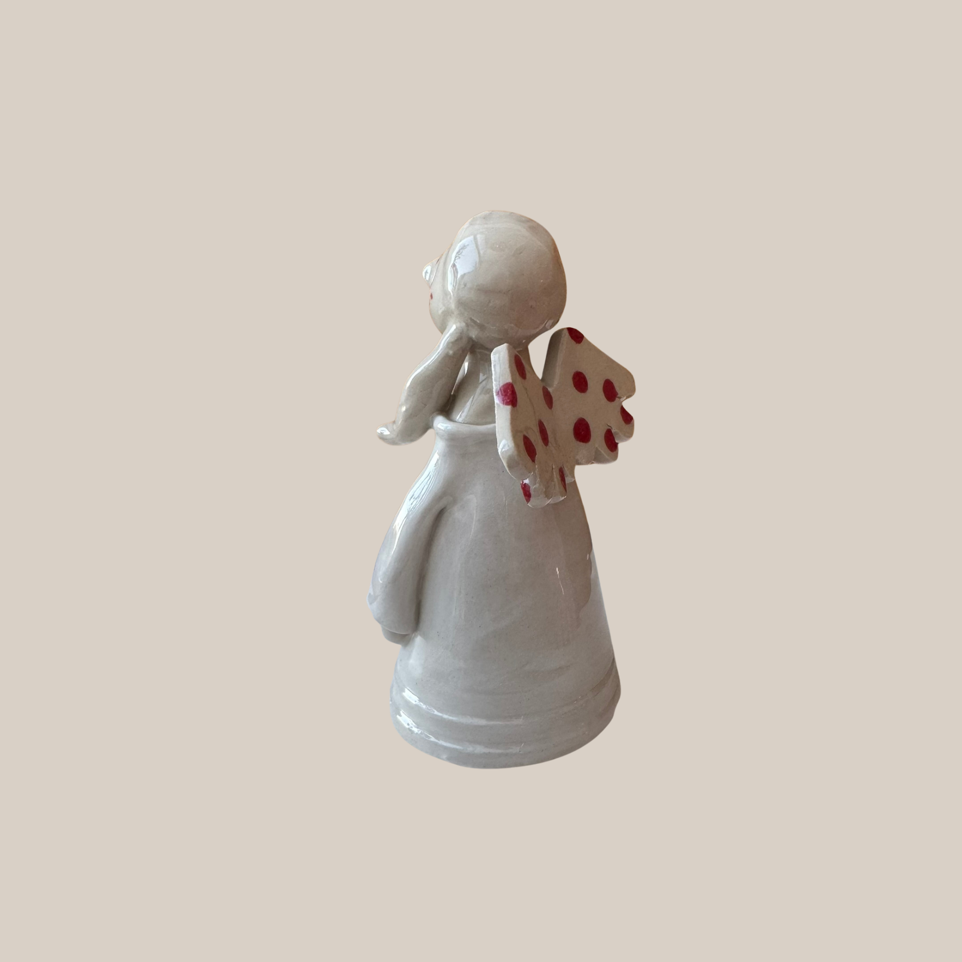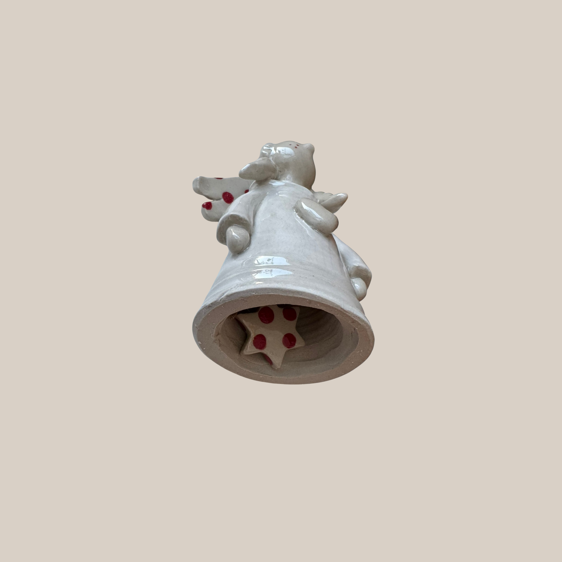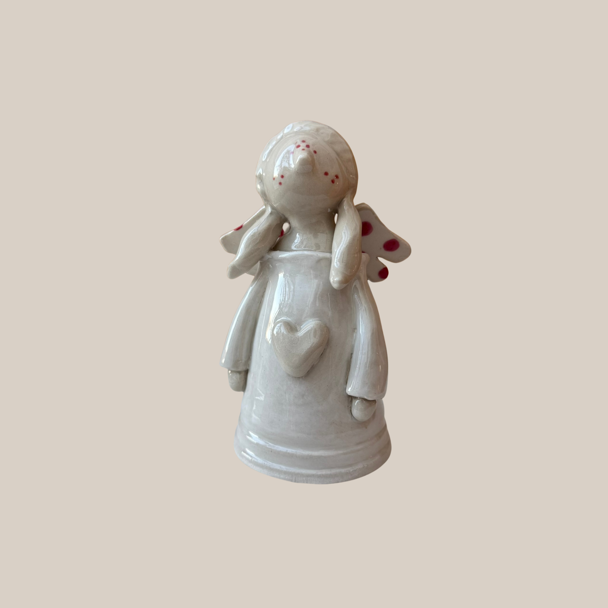 Hun har et lille keramikhjerte i en lædersnor inden i så hun kan "ringe"