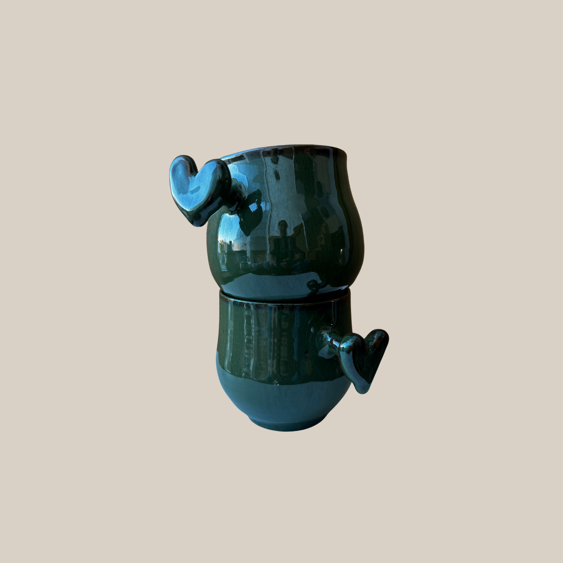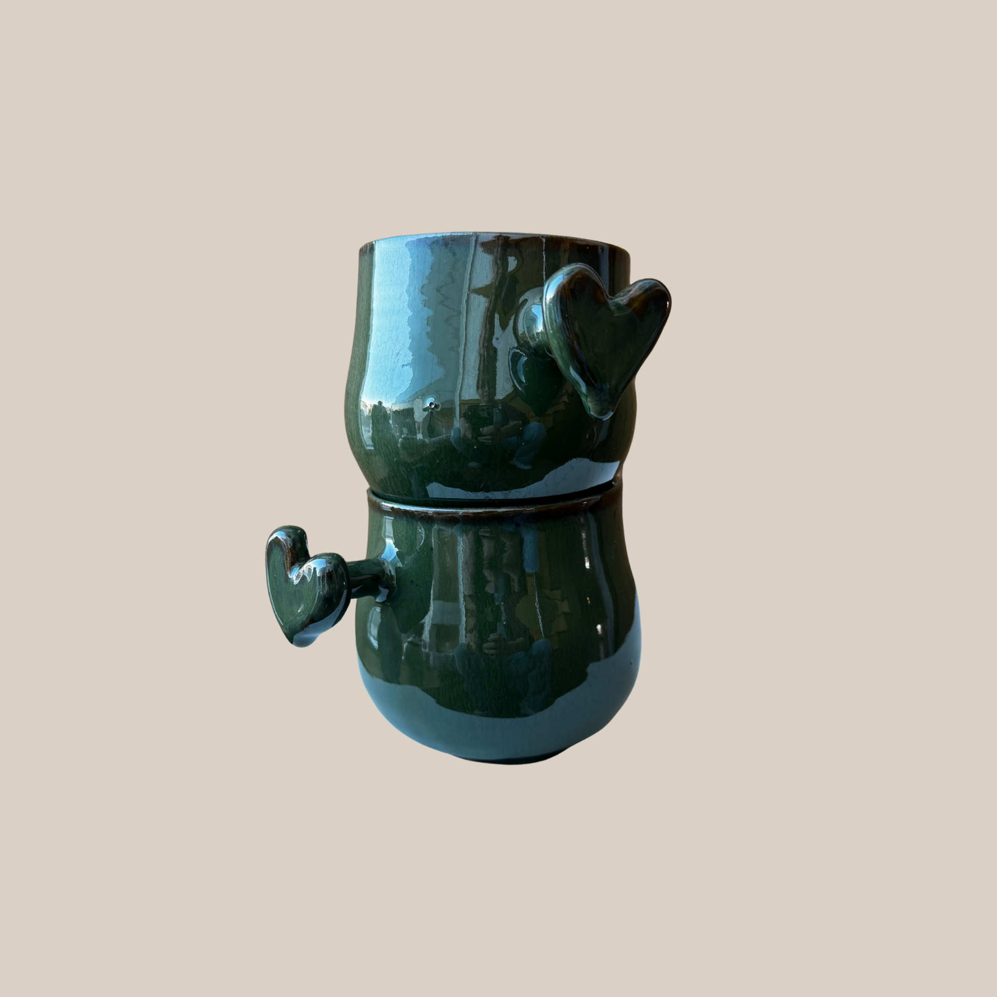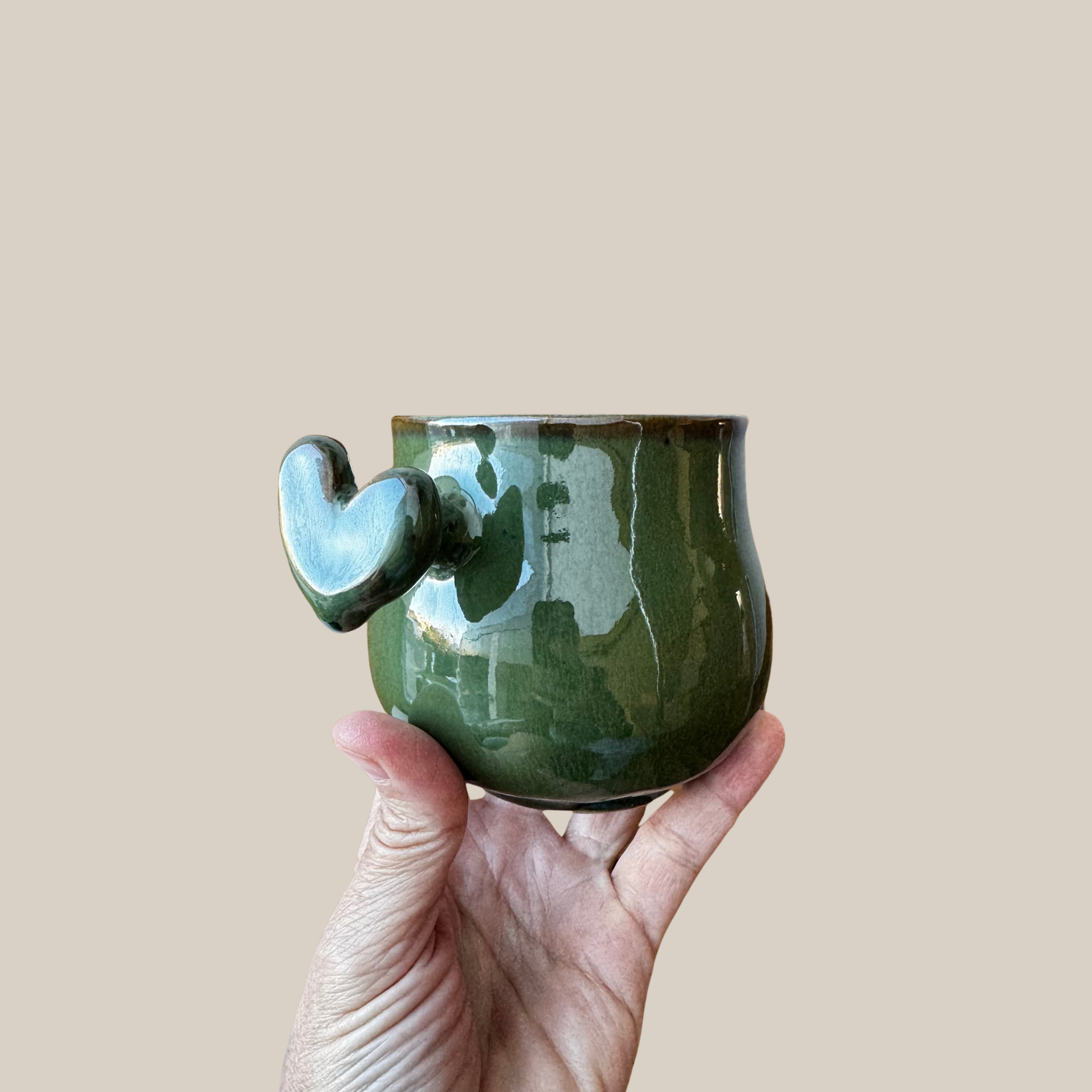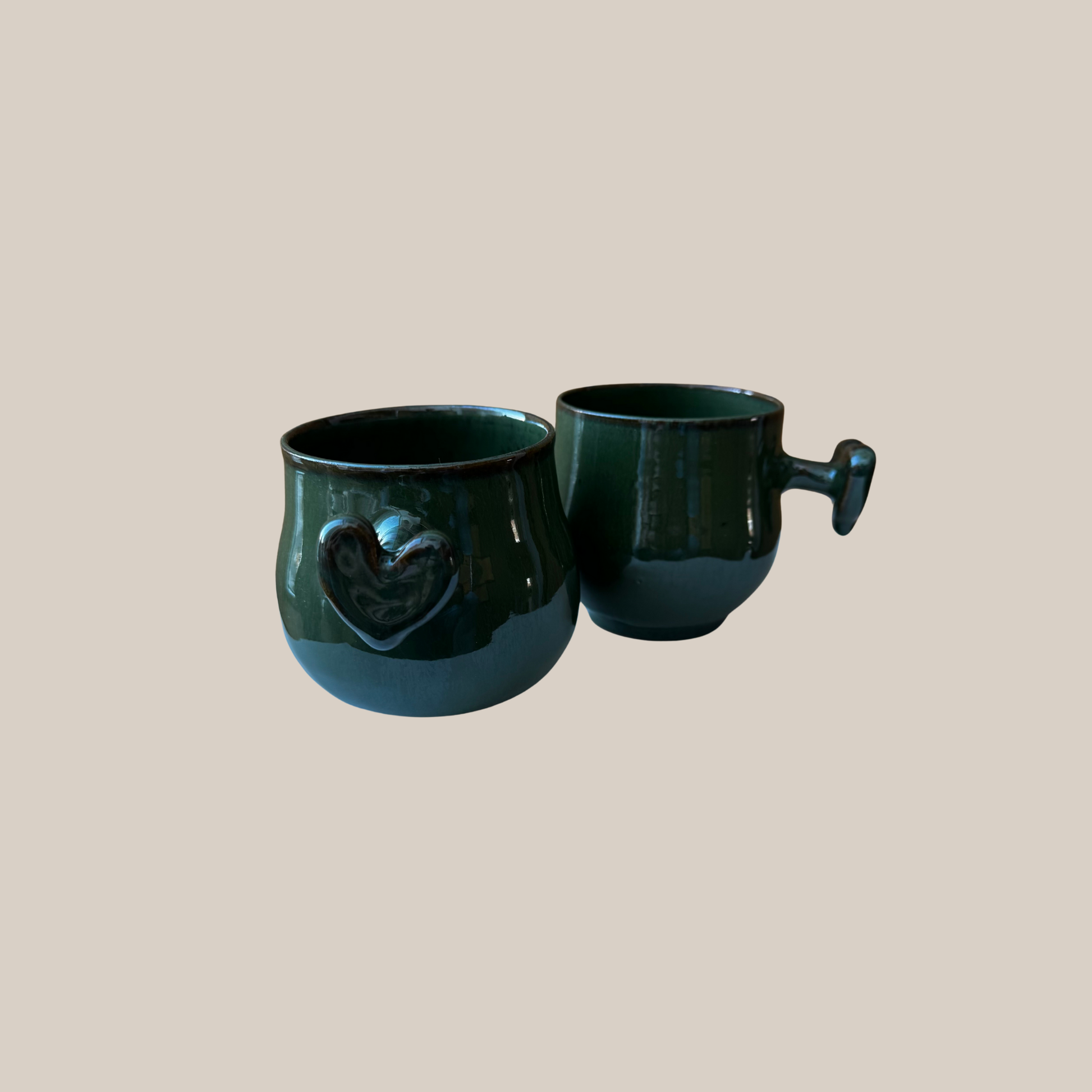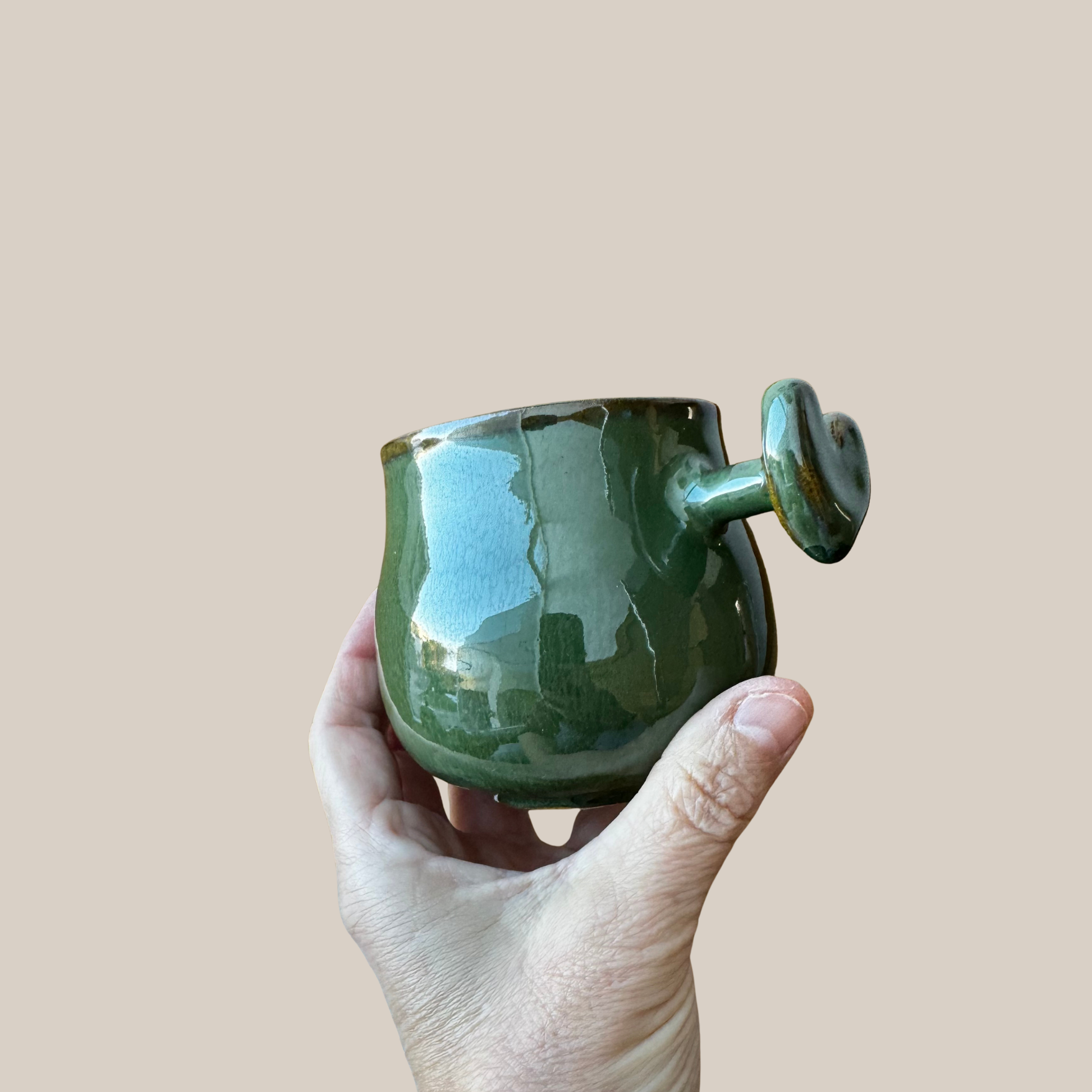 Hjerteslagskoppen er en fin lille kaffekop med stubhåndtag, hvor jeg på enden har sat et lille håndmodelleret hjerte.