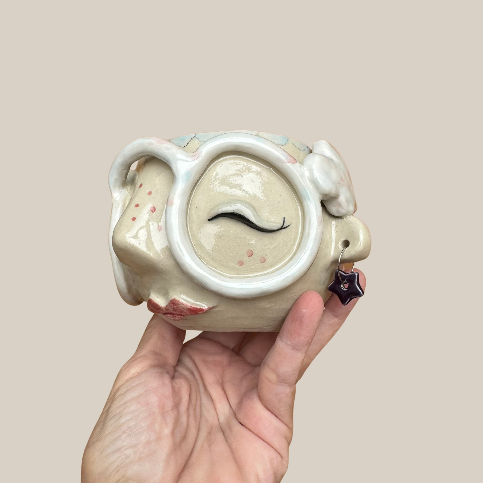 Kiki-koppen har et karakteristisk ansigt med store sjove briller, og hver eneste kop er skabt med kærlighed i Sæby.