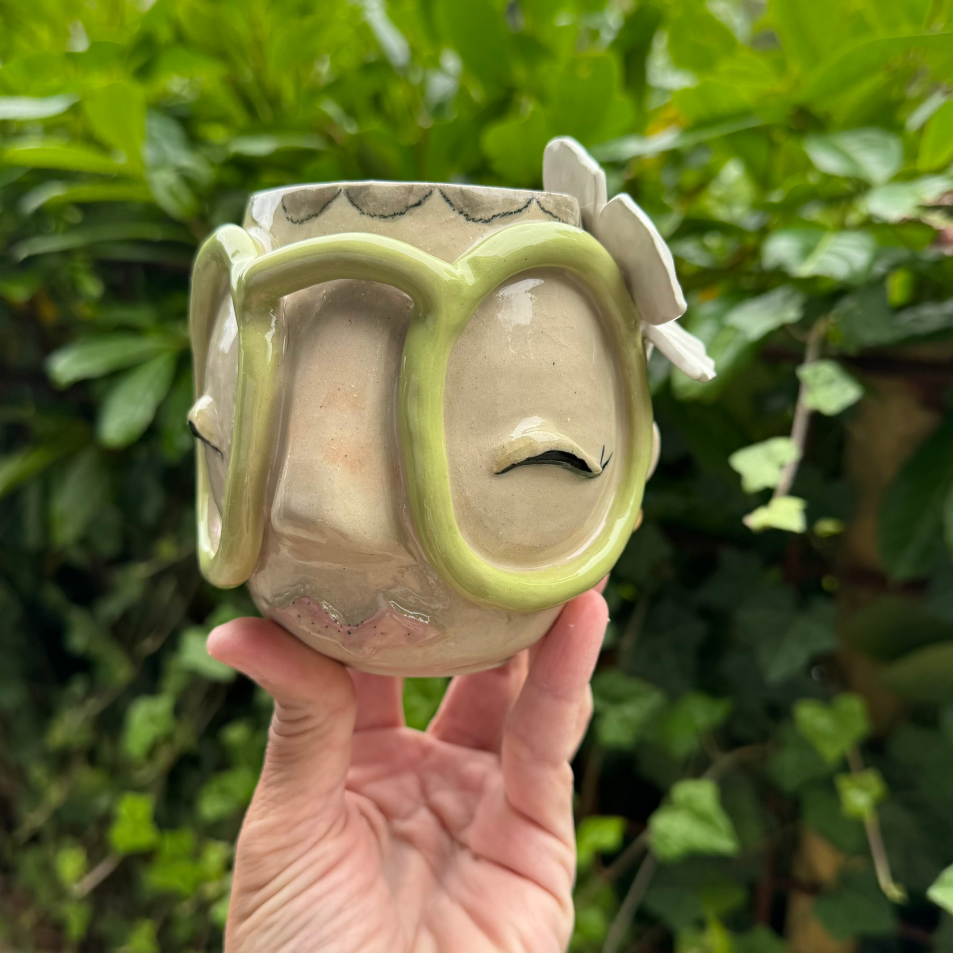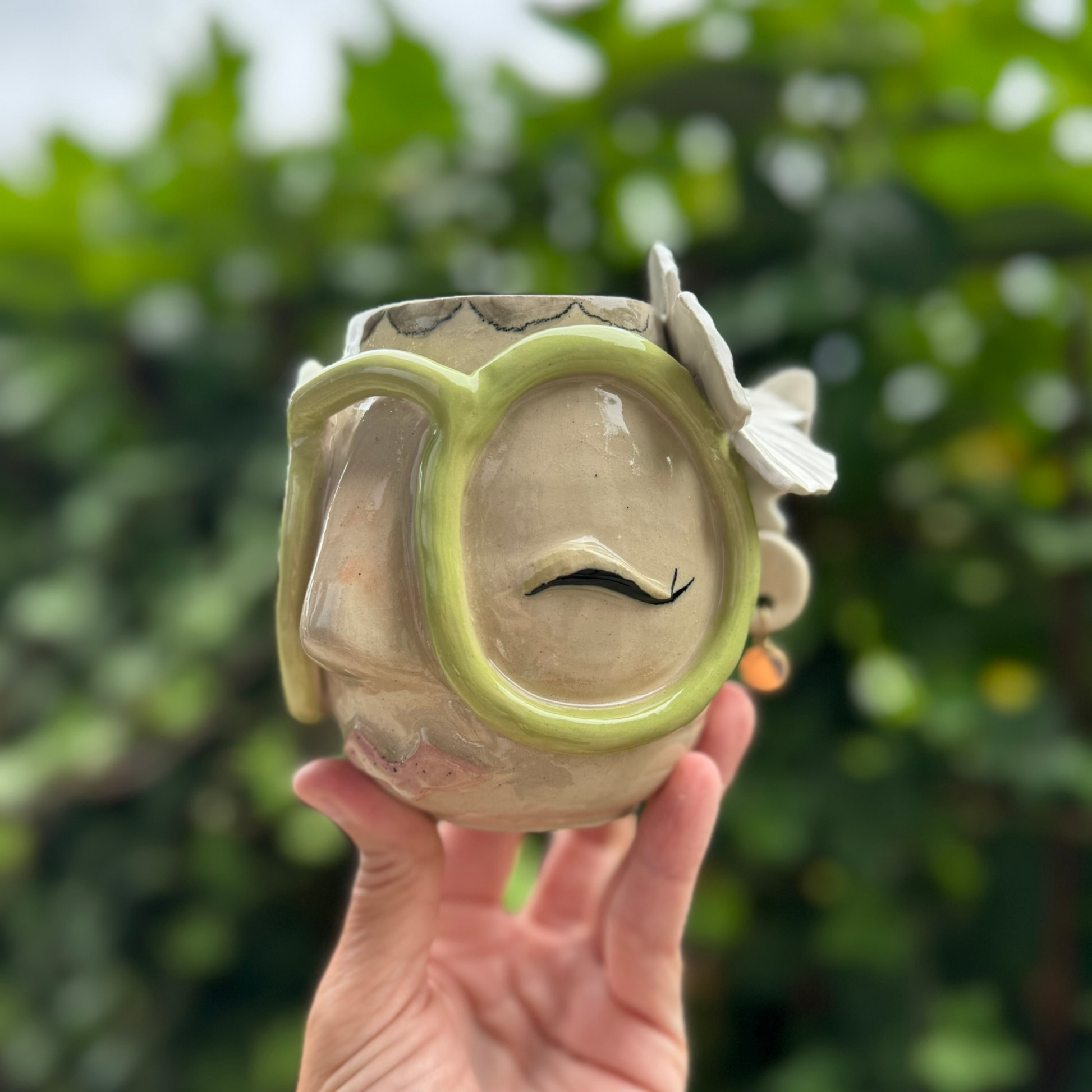 Kiki-koppen har et karakteristisk ansigt med store sjove briller, og hver eneste kop er skabt med kærlighed i Sæby.