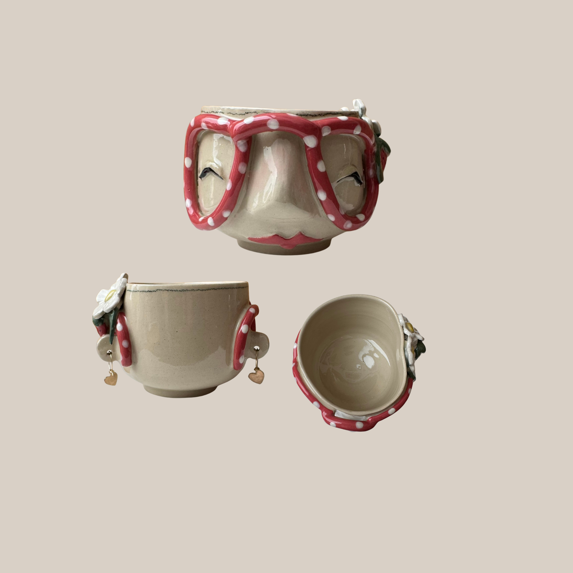 Kiki-koppen har et karakteristisk ansigt med store sjove briller, og hver eneste kop er skabt med kærlighed i Sæby.
