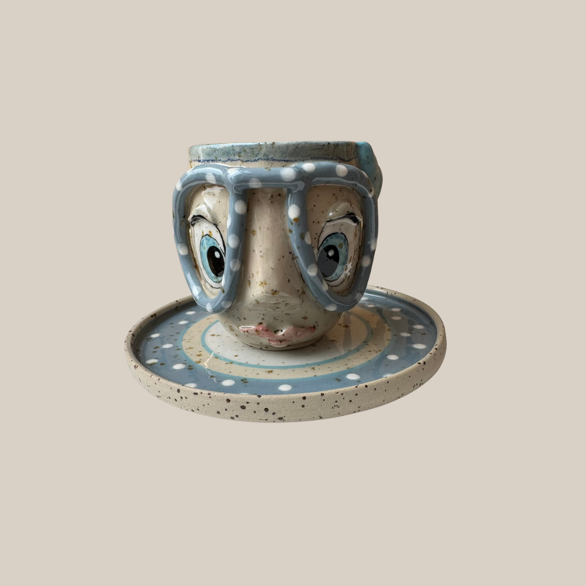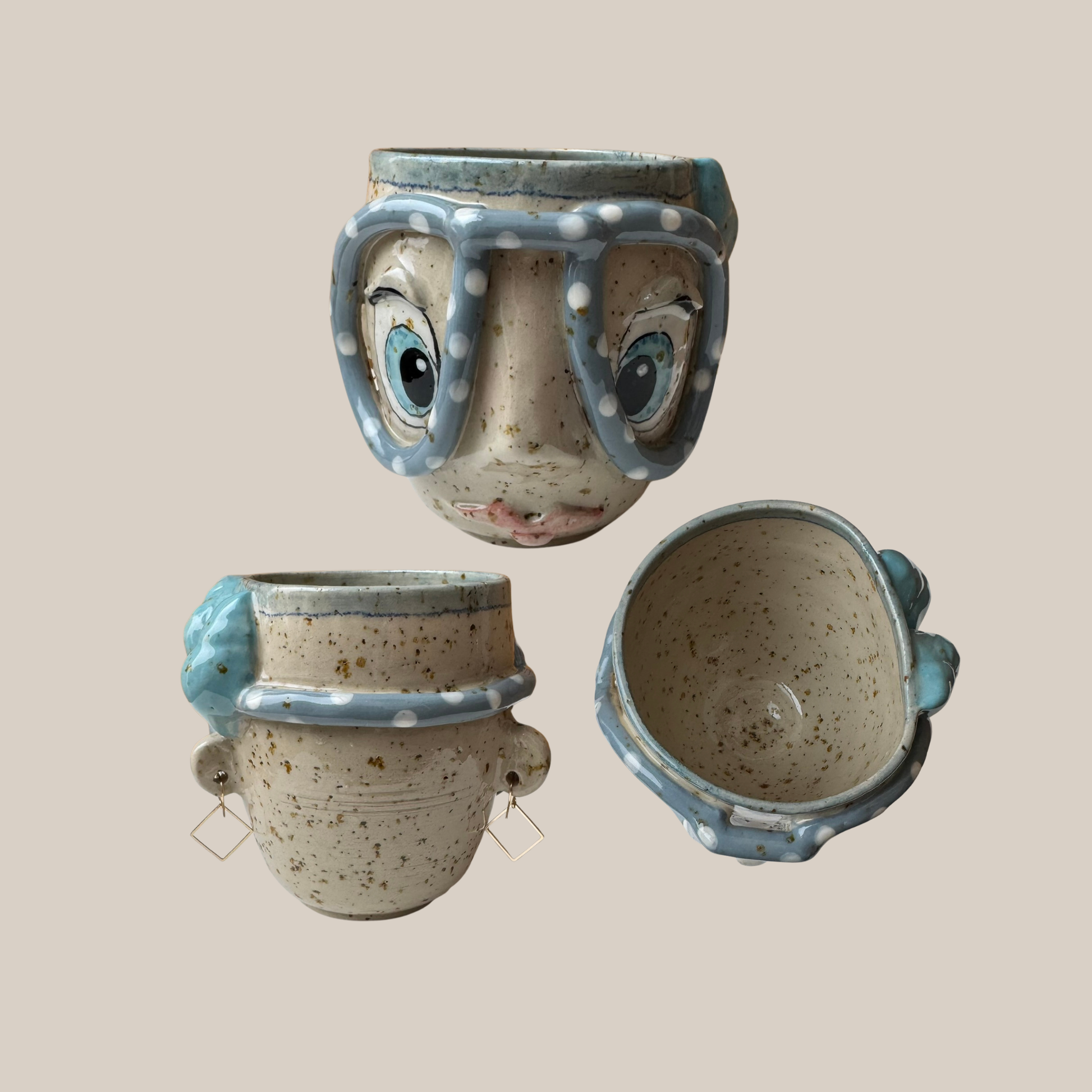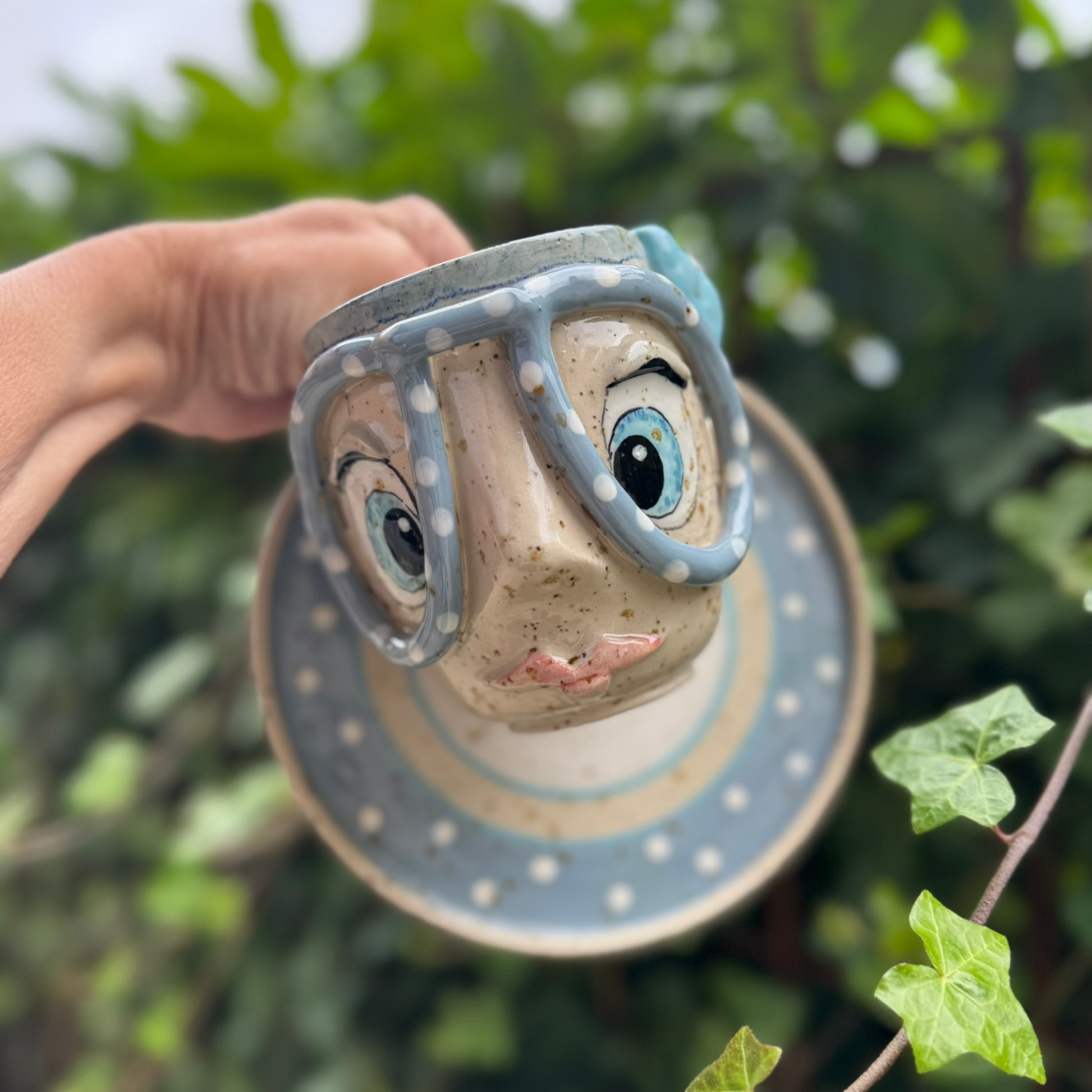 Kiki-koppen har et karakteristisk ansigt med store sjove briller, og hver eneste kop er skabt med kærlighed i Sæby.