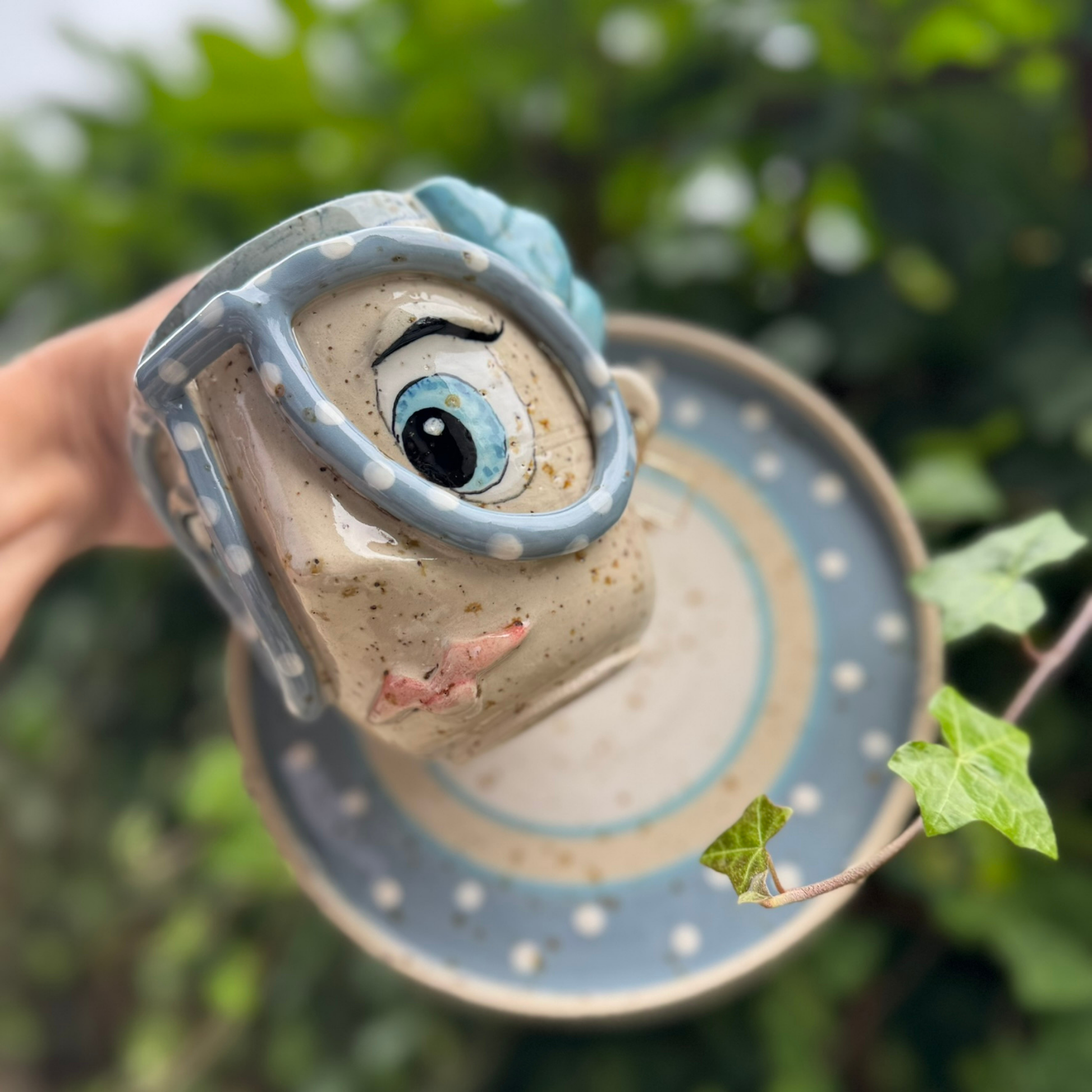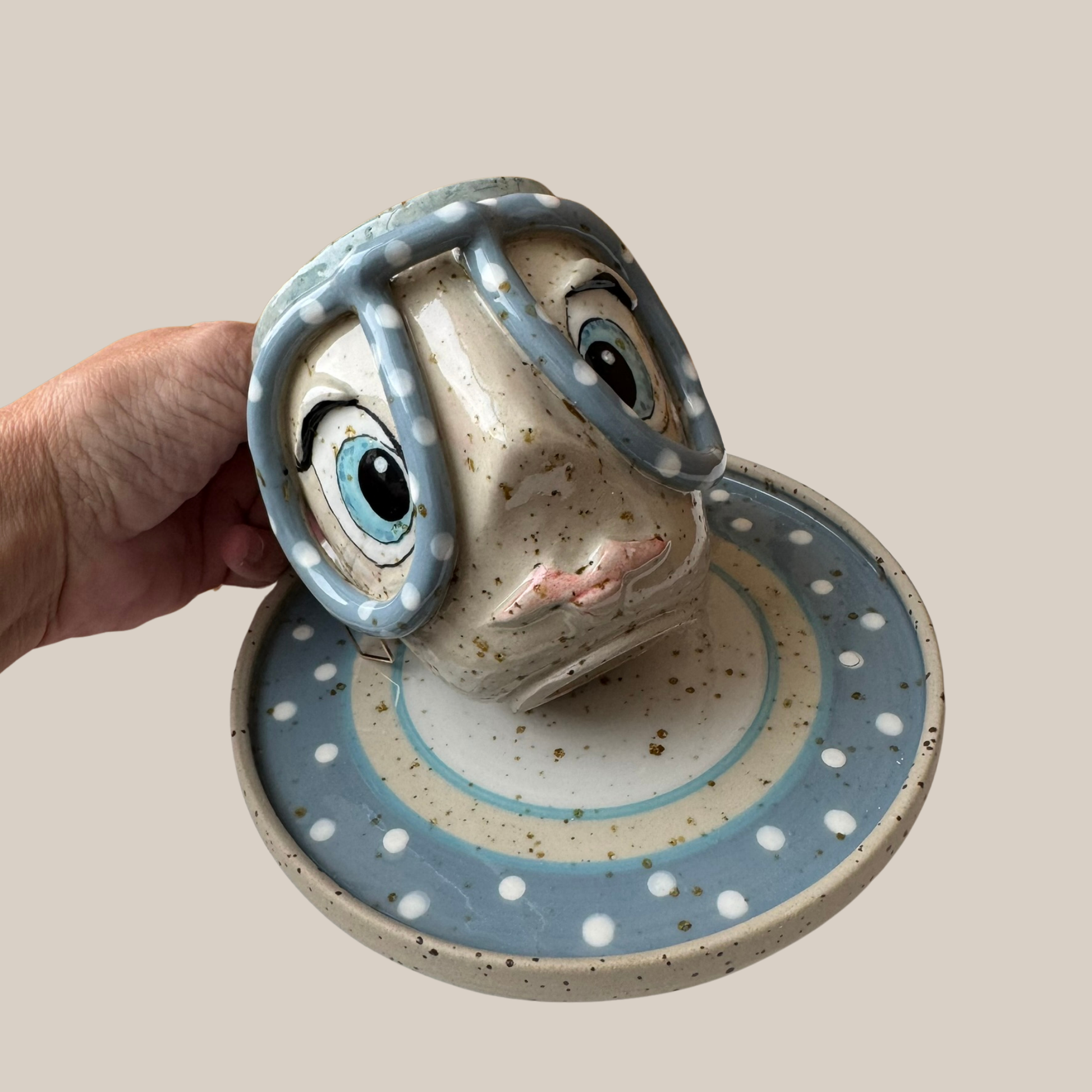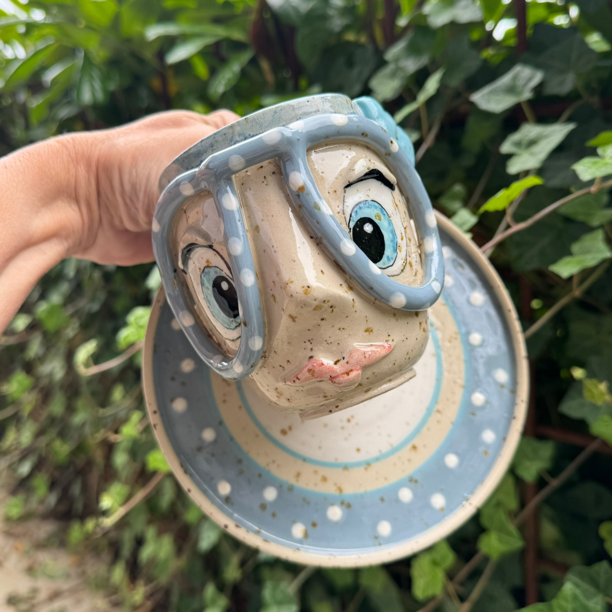 Kiki-koppen har et karakteristisk ansigt med store sjove briller, og hver eneste kop er skabt med kærlighed i Sæby.