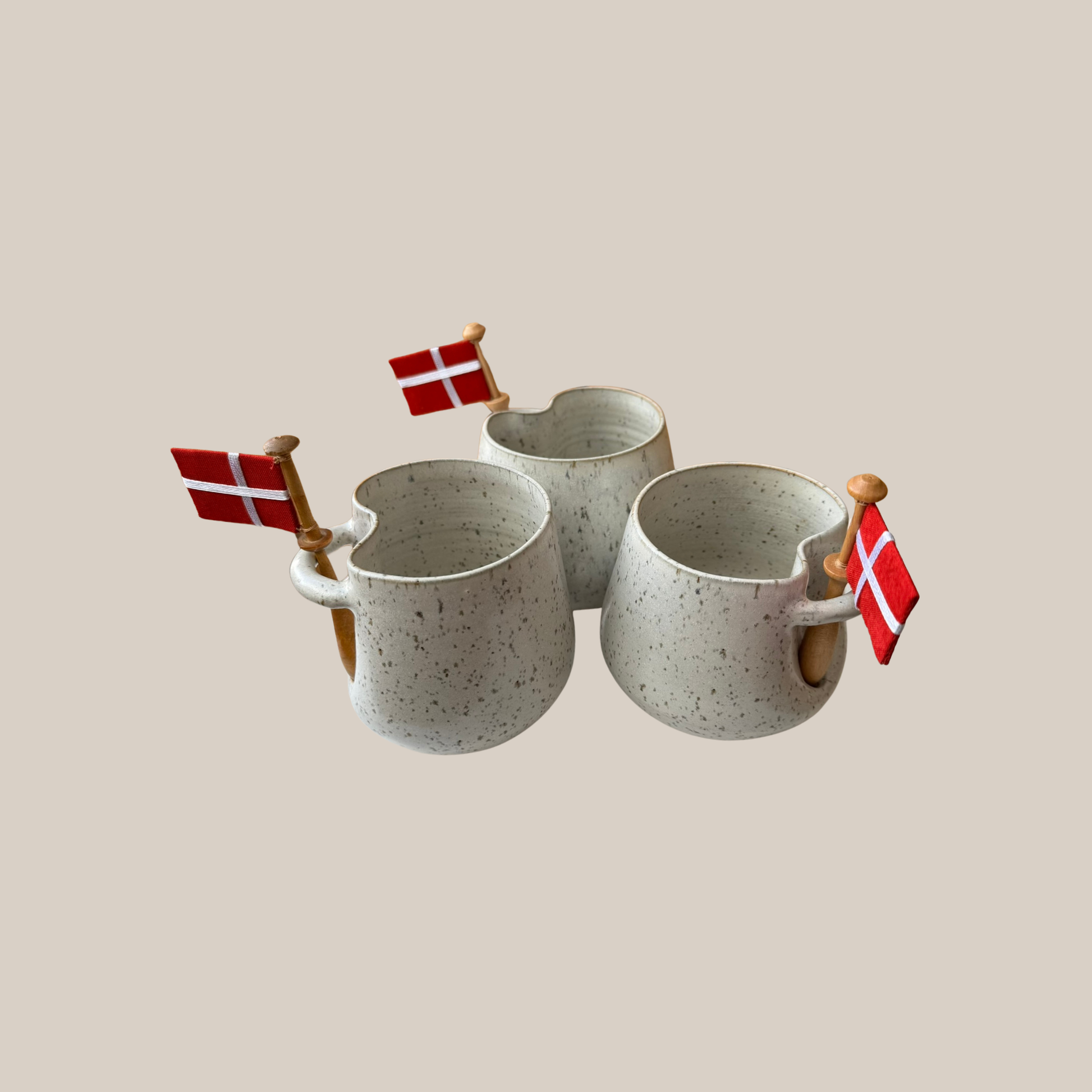 Designet på denne kop med flag er unikt og udviklet af mig - Rikke Pape, og designet er et registreret og designbeskyttet produkt i henhold til gældende lovgivning hos patent og varemærkestyrelsen.