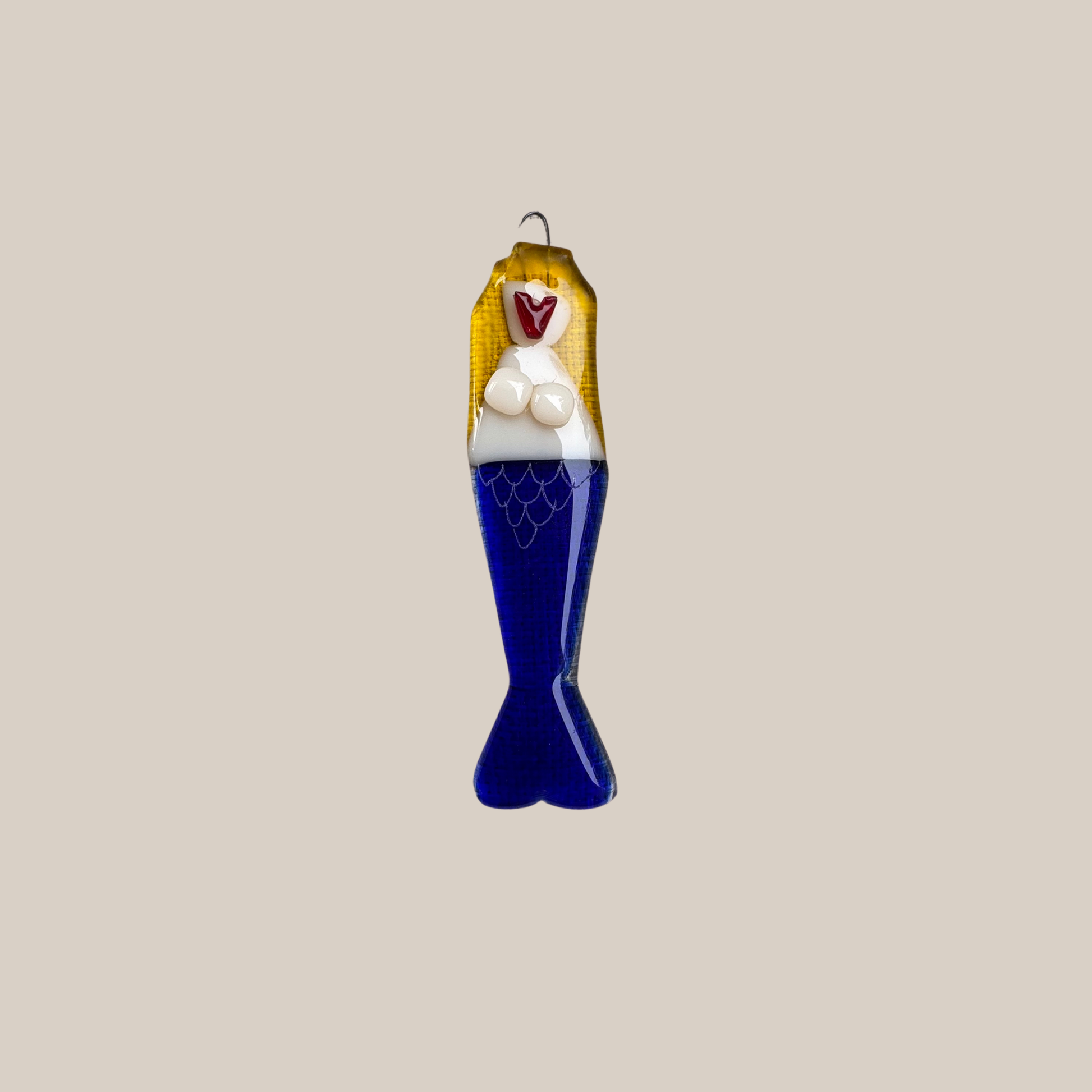 Ophænget af Havfruen varierer i farverne på nederste del, der laves i blå/turkise nuancer, samt på håret, der laves i forskellige i gule nuancer. Sælges assorteret.