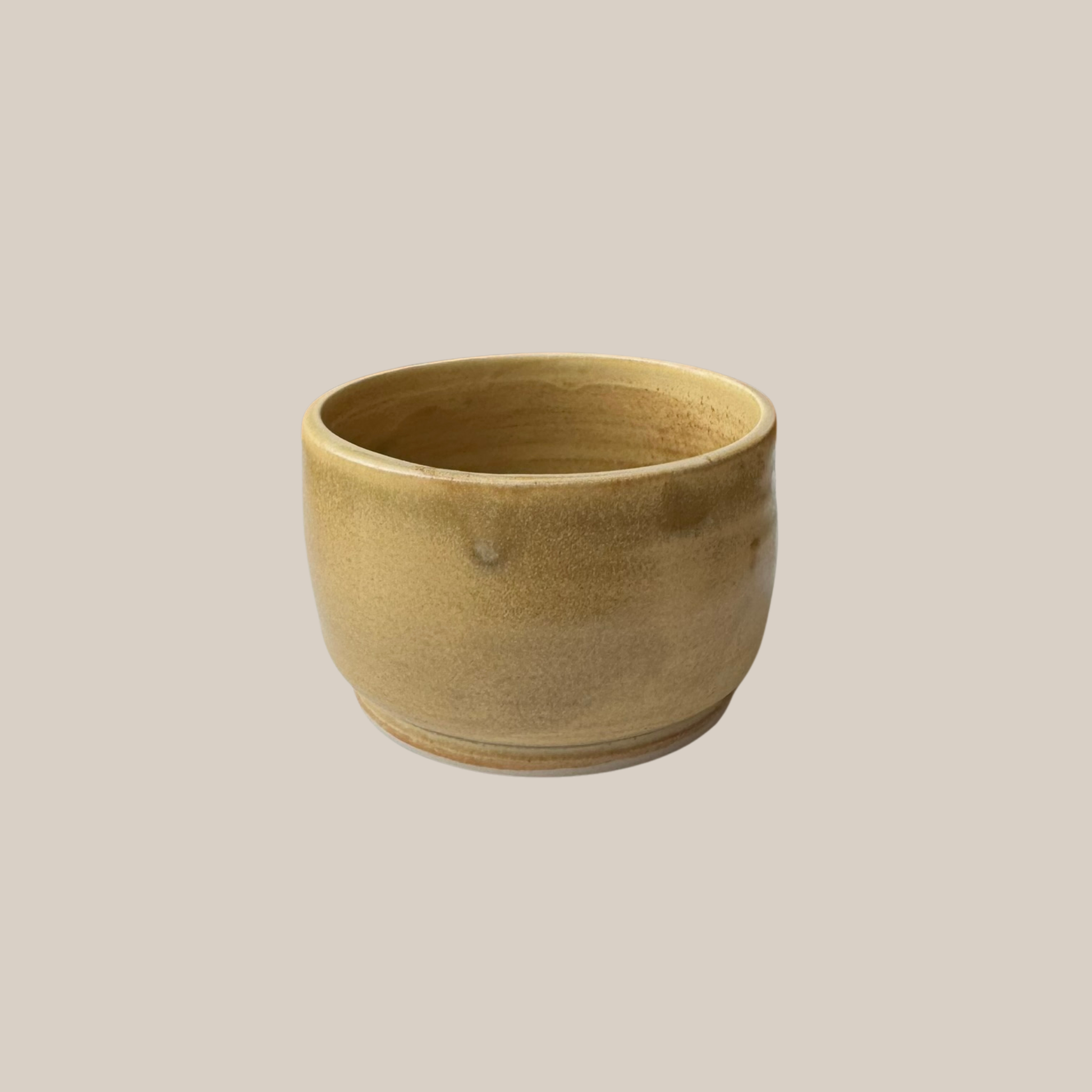 Lille saltkar i lyst stentøjsler og glaseret med en flot gylden glasur.
