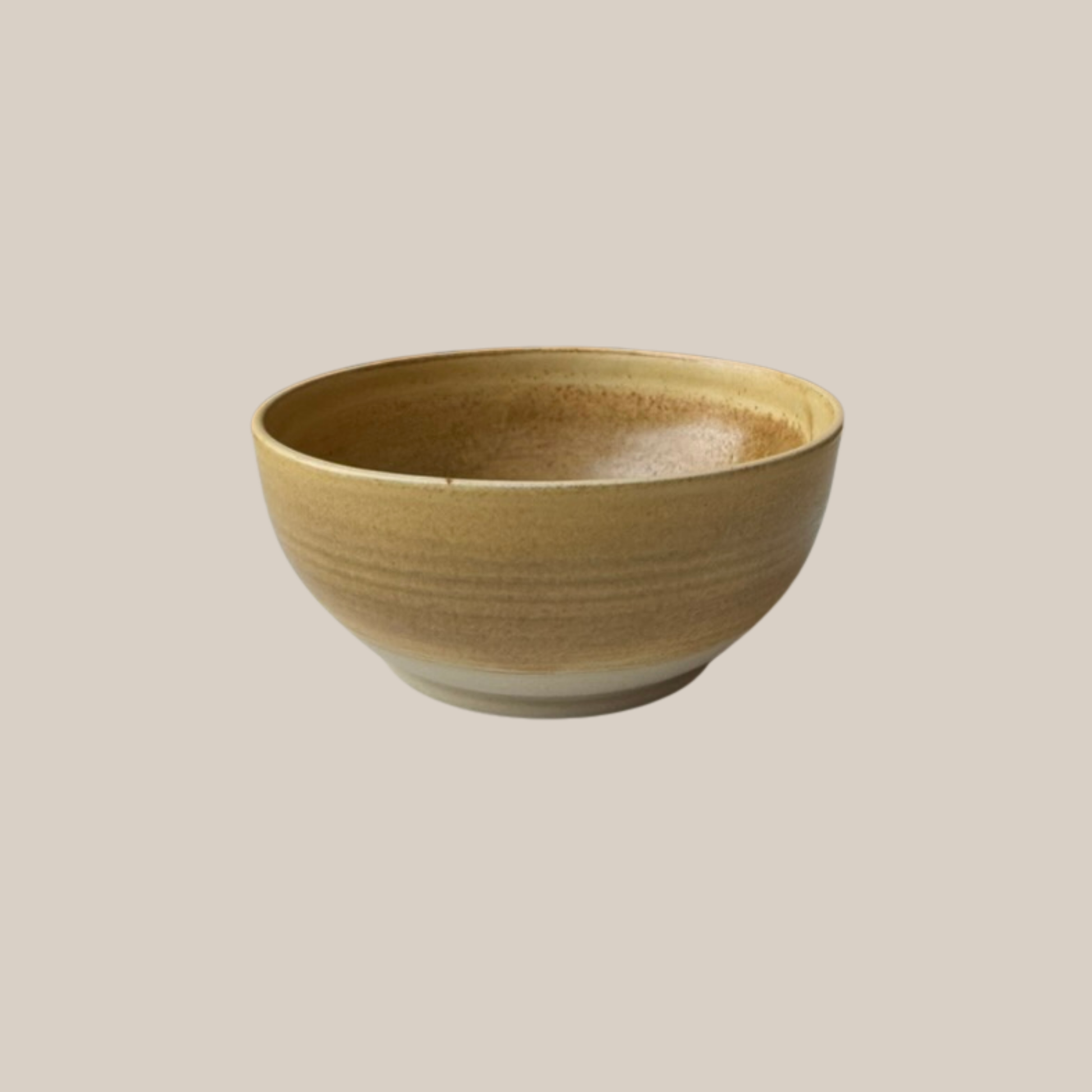 Lille saltkar i lyst stentøjsler og glaseret med en gylden glasur.